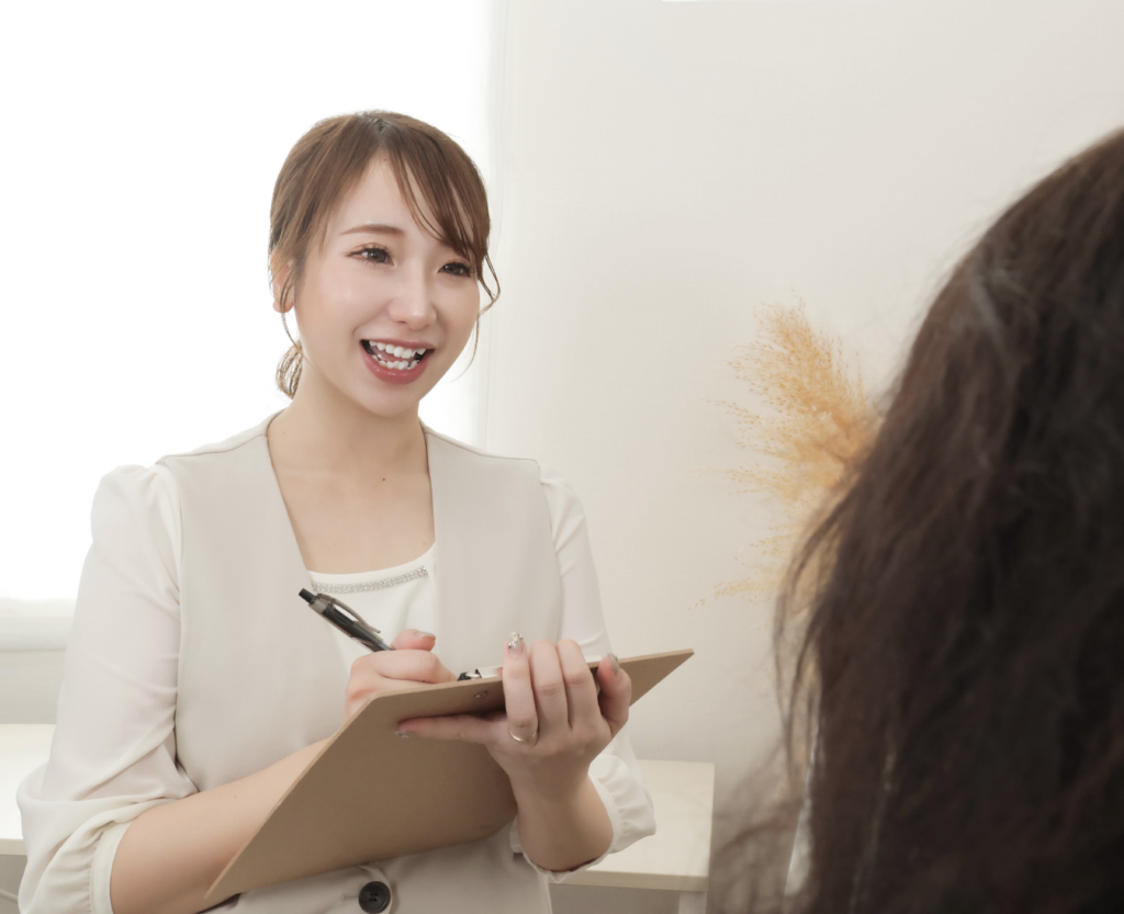 今の髪色に合わせるのか、ちょっと明るくするのか、あるいはアクセントにメッシュを入れるかなど、決めていきます。